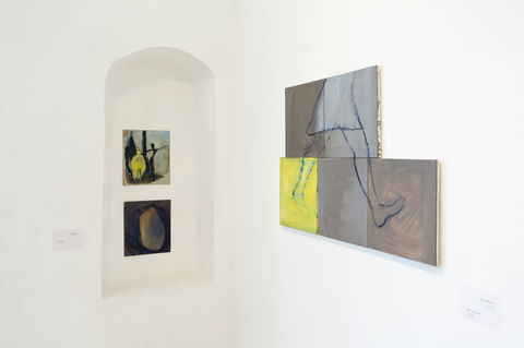 The exhibition of oil paintings is divided into two sections: a retrospective from different periods, and an installation under the title “Body language, movement notation.”